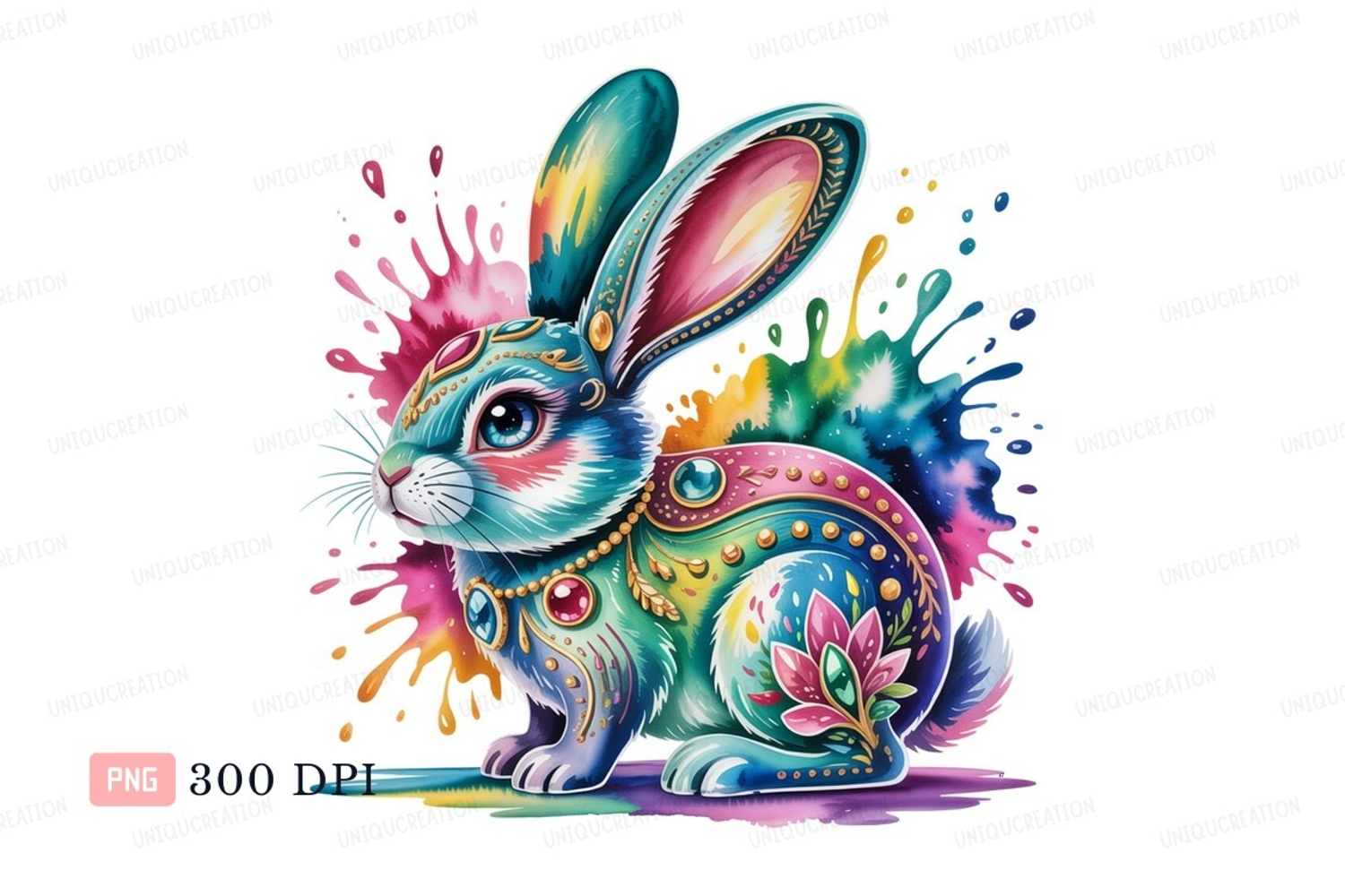 Similar Design Products to Colorful ornate rabbit with paint splashes image