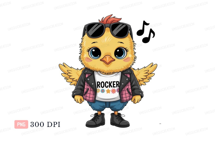 Yellow chick wearing sunglasses and rocker jacket image example image 1