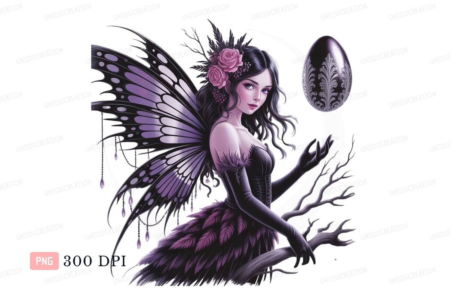 Similar Design Products to Dark fairy with purple wings and ornate egg image