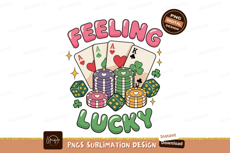 Pink lucky feeling cards dice chips SUBLIMATION example image 1