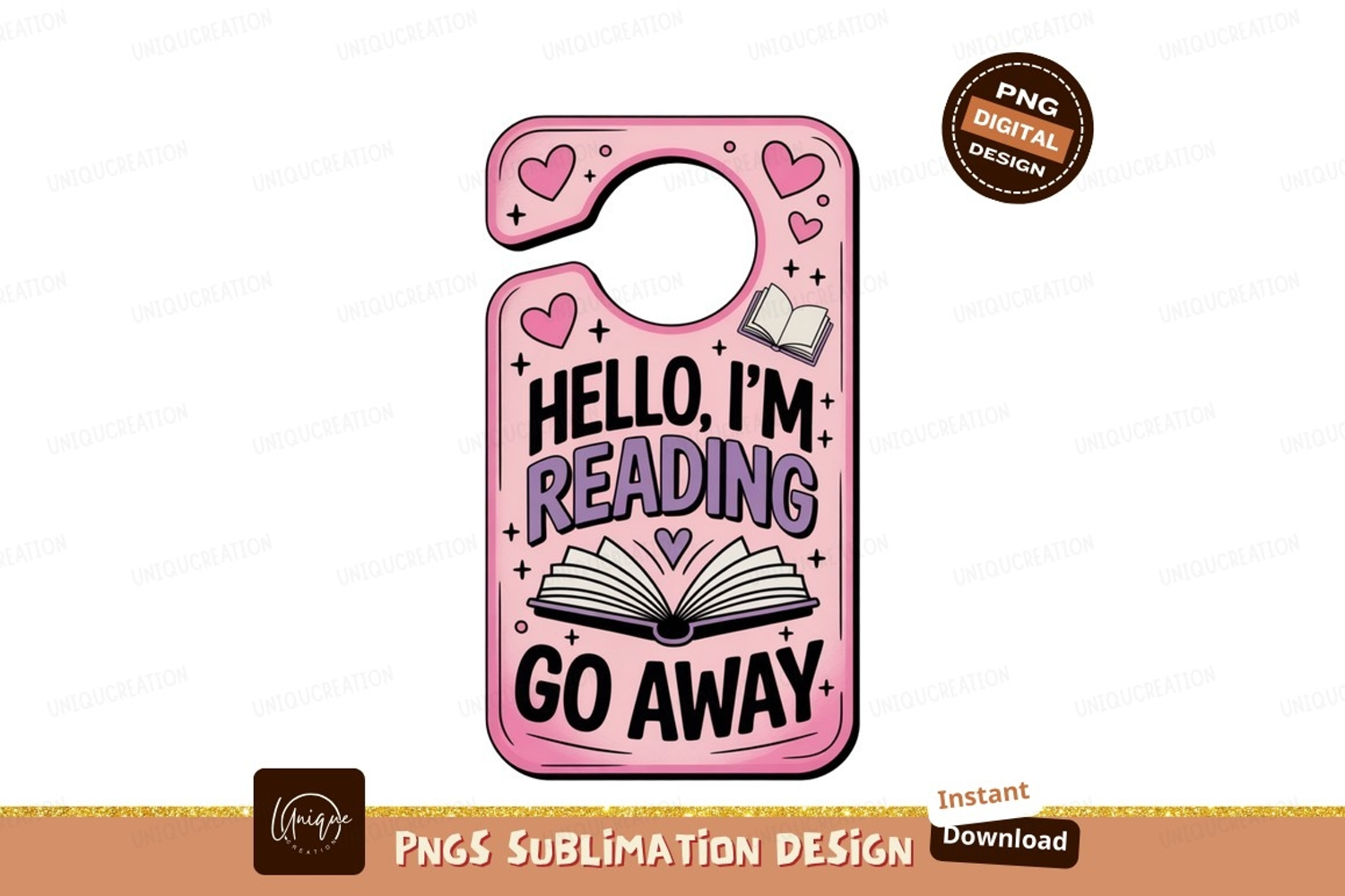 Pink door hanger with hearts and books purple reading example image 1