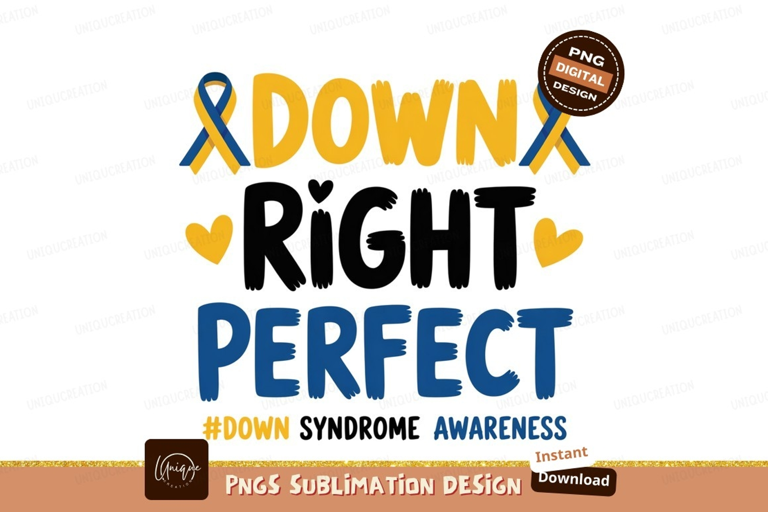 Yellow blue ribbon hearts perfect awareness down syndrome