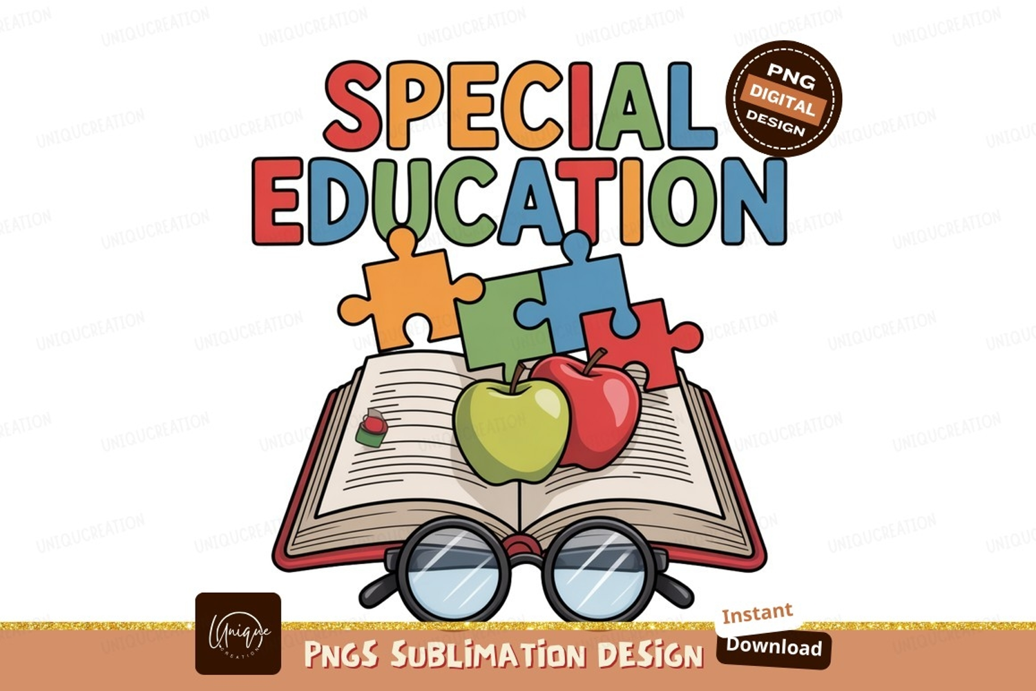 Similar Design Products to Colorful puzzle pieces above open book with apples and glass