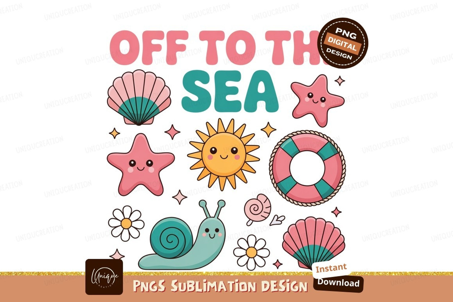 Cute Summer Sea Creatures And Sun SUBLIMATION example image 1
