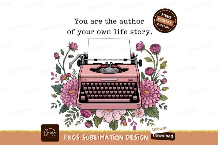 Similar Design Products to Pink typewriter surrounded by flowers floral writing