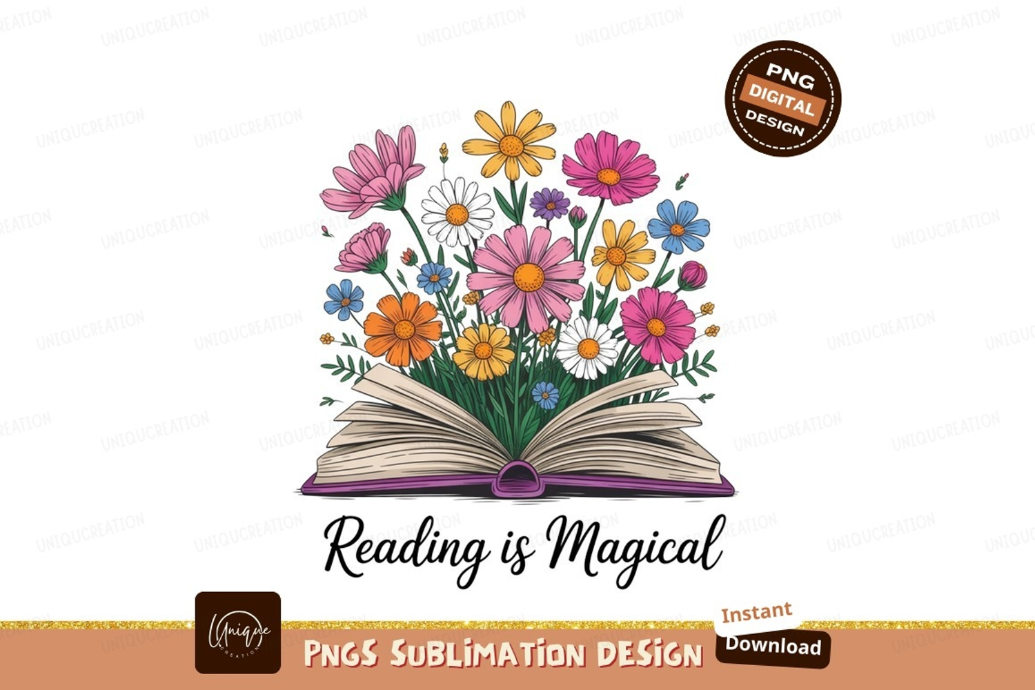 Book Blooming Colorful Flowers Magic Png Reading Sublimation Calico