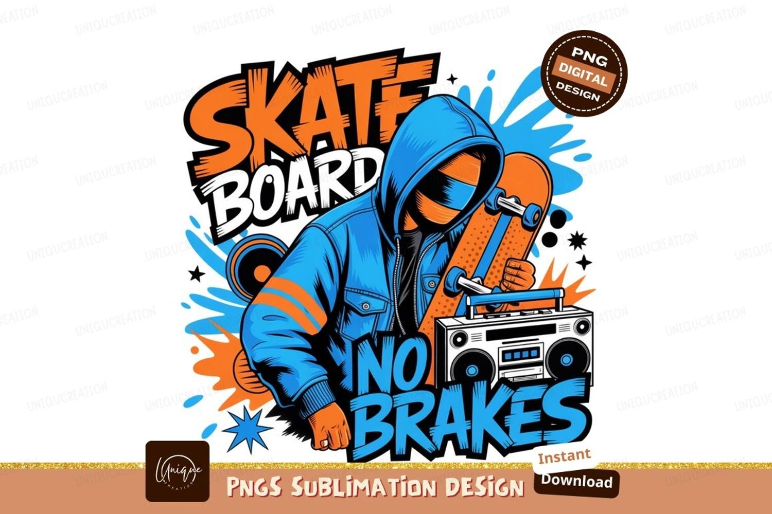 Similar Design Products to Skater holding skateboard with boombox urban street