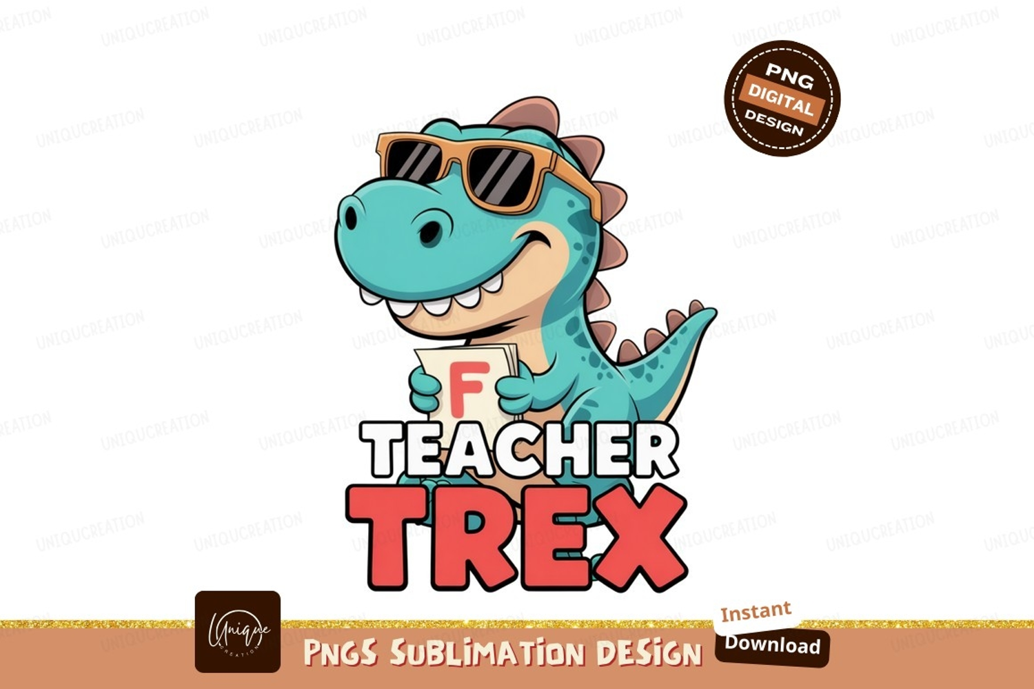 Cool teacher dinosaur holding paper sunglasses letter example image 1