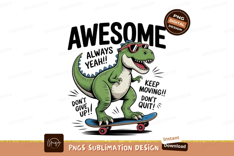 Green dinosaur wearing sunglasses riding skateboard example image 1