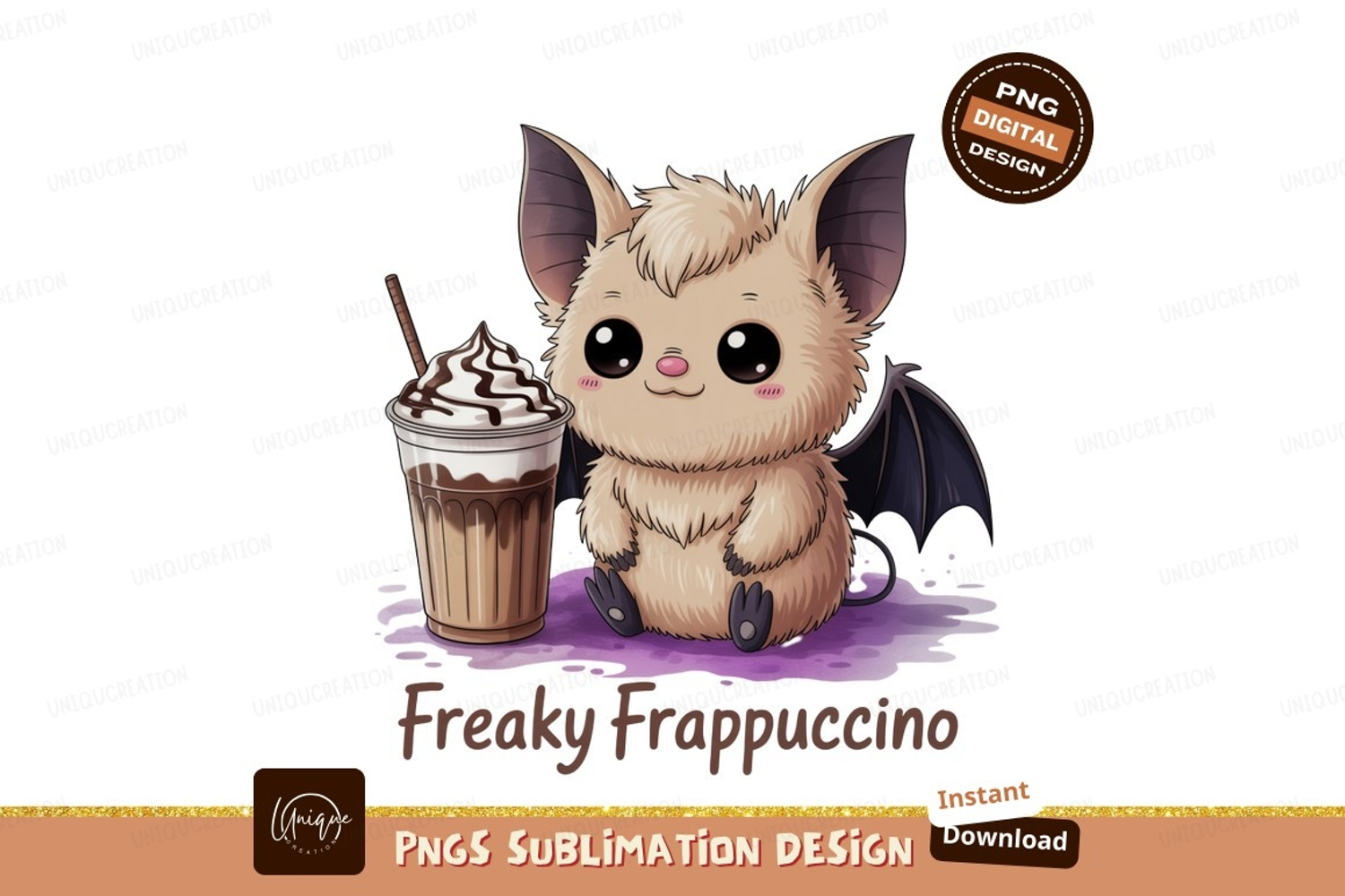 Fluffy bat with sweet drink cute coffee example image 1