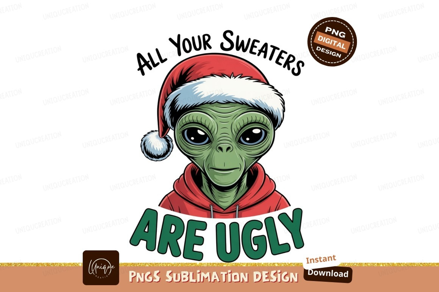 Similar Design Products to Green alien wearing santa hat and hoodie christmas