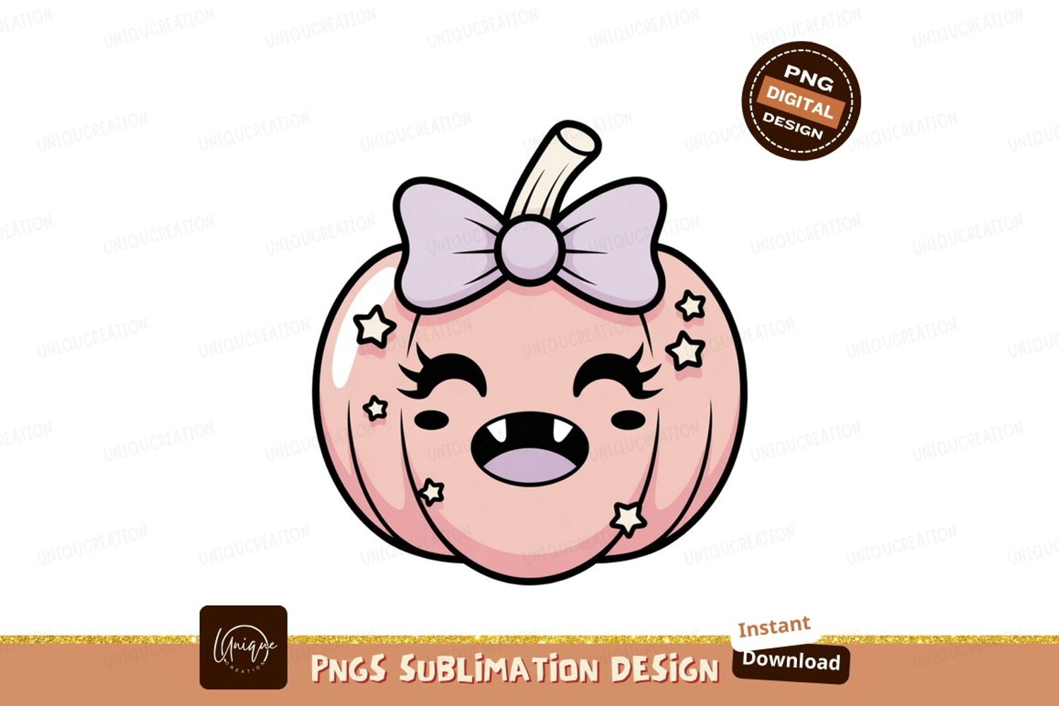 Similar Design Products to Pink pumpkin character with bow stars kawaii
