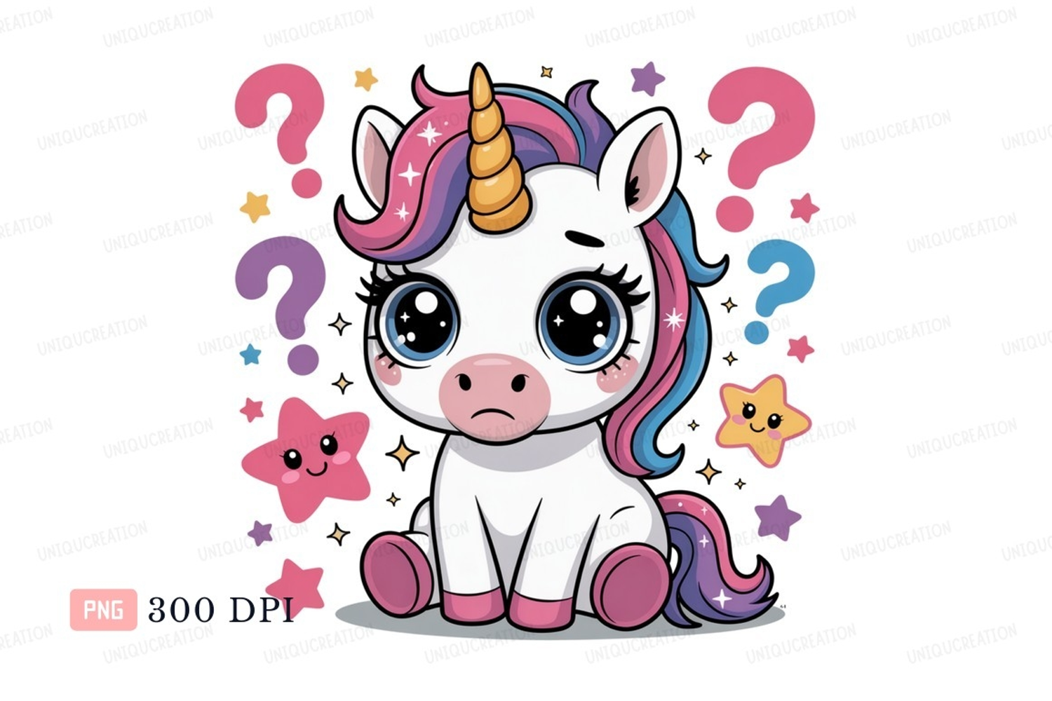 Pink Purple Blue Yellow Unicorn White Star Mark Question Sad