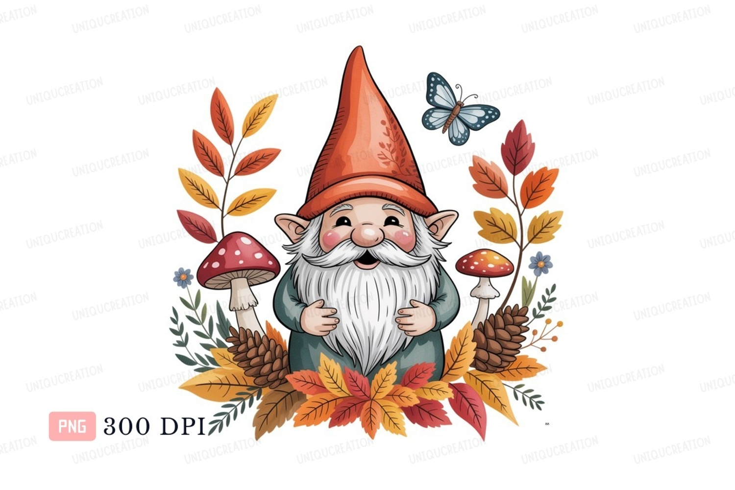 Autumn gnome with butterfly and mushrooms leaves example image 1