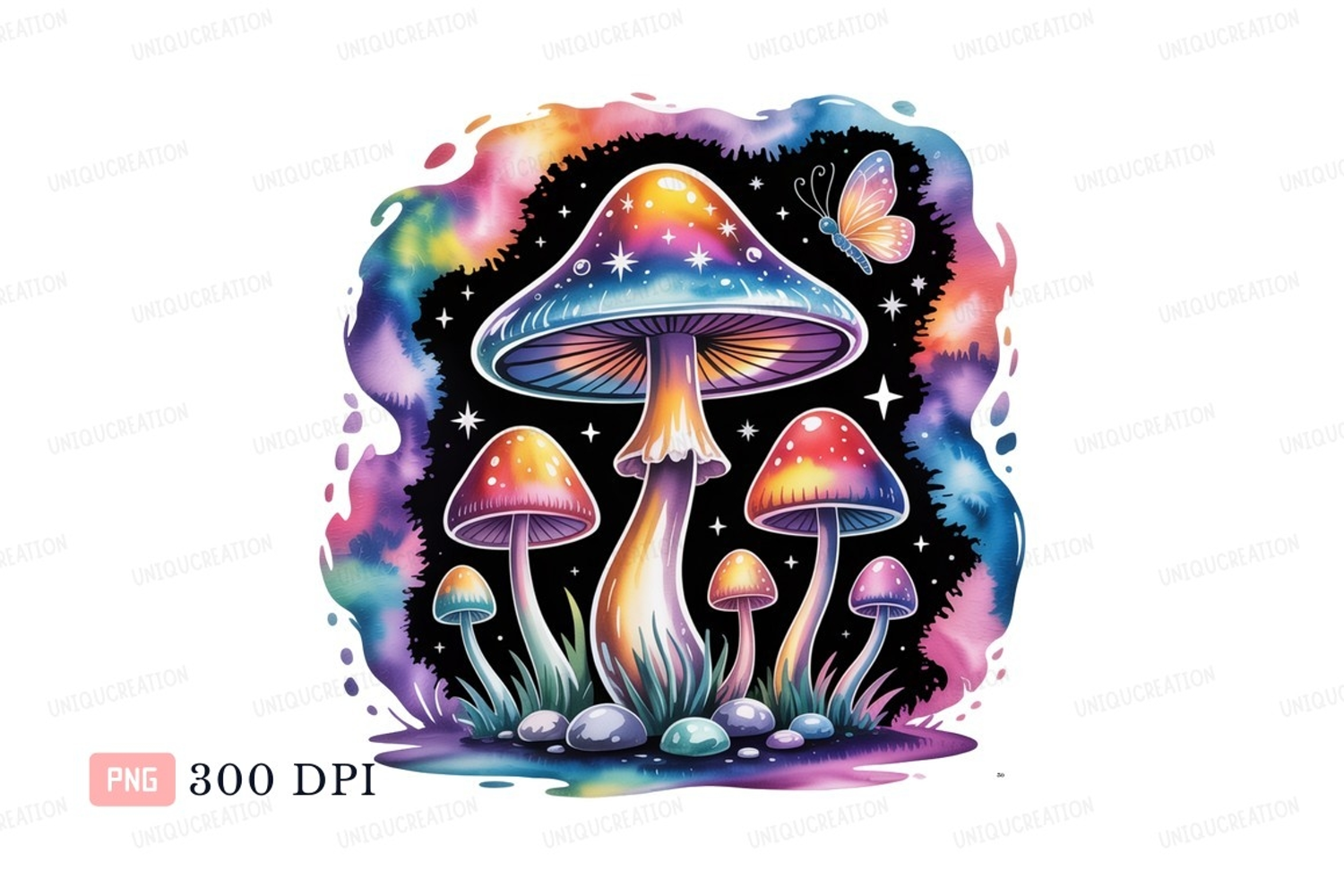 Fantasy Whimsical Nature Colorful Clipart Butterfly Mushrooms Stars Psychedelic
