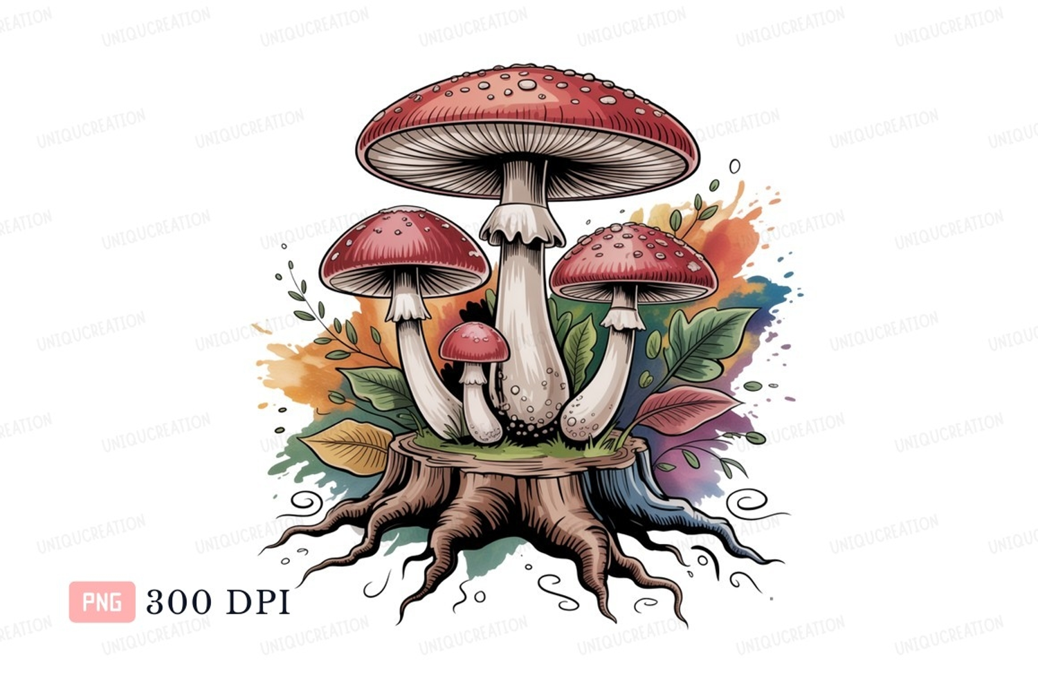 Similar Design Products to Red spotted mushrooms on tree stump white spots