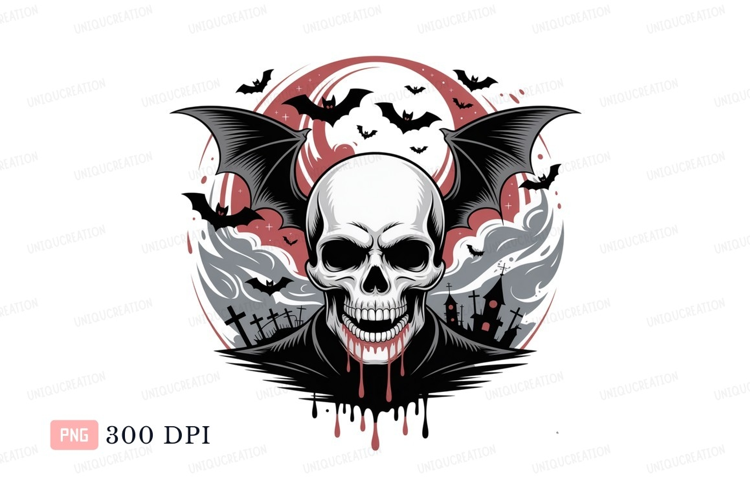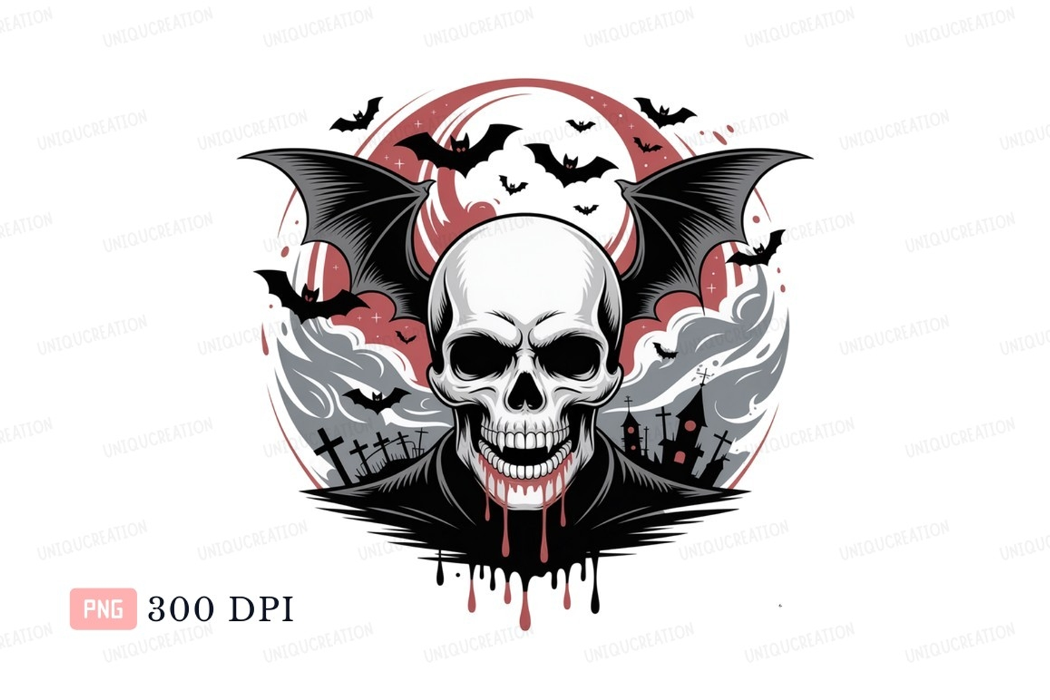 Horror Halloween Skull Dark Bat Spooky Wings Creepy Graveyard Bleeding