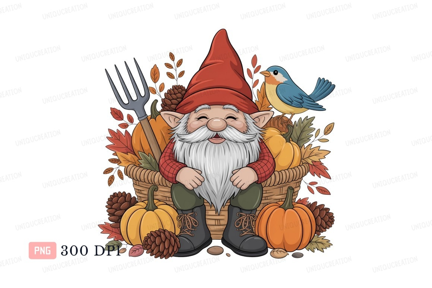 Garden Clipart Autumn Fall Leaves Bird Pumpkin Basket Pinecone Gnome