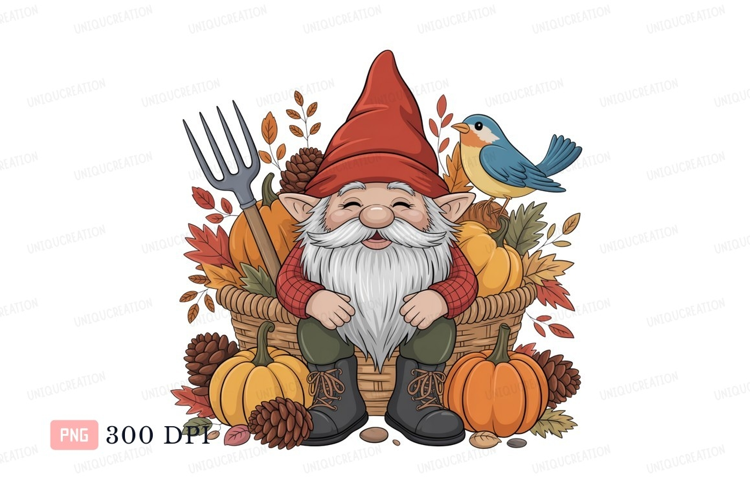 Autumn gnome with pumpkins and bird CLIPART fall example image 1