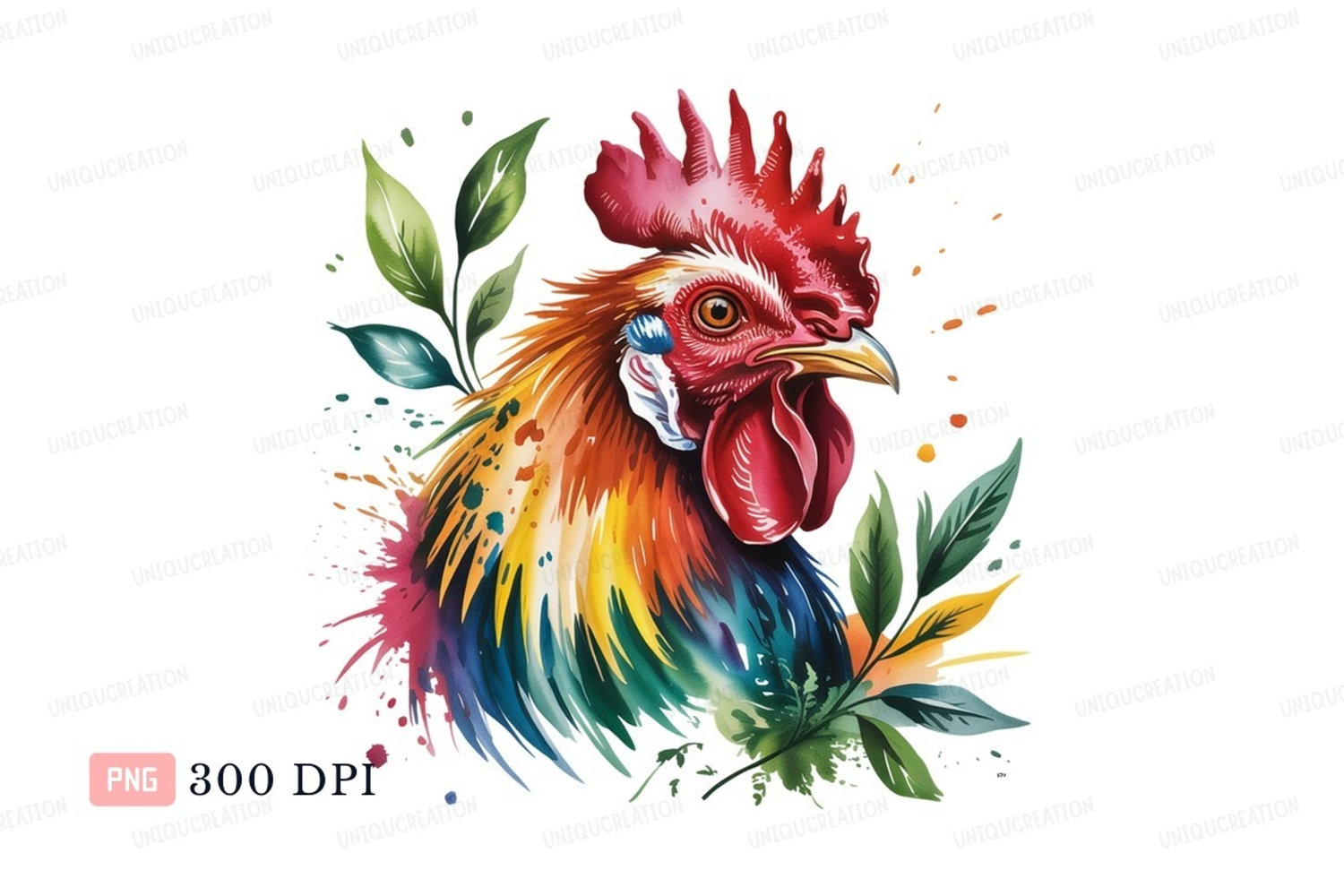 Illustration Watercolor Animal Nature Clipart Bird Vibrant Fowl Rooster Poultry
