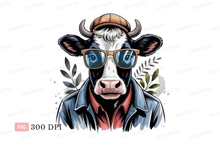 Hipster cow wearing sunglasses and jacket animal example image 1