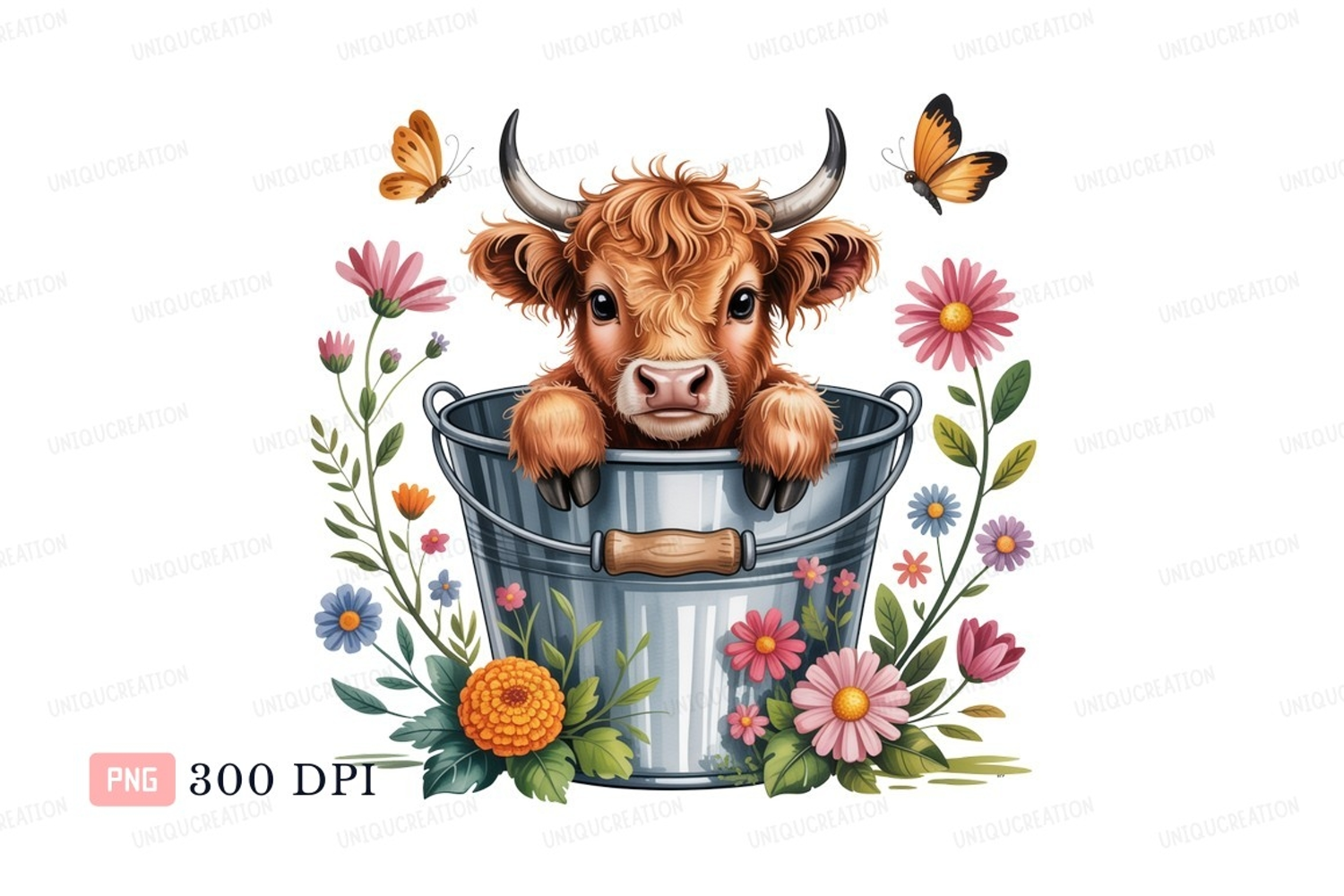 Similar Design Products to Fluffy calf in bucket with flowers butterflies CLIPART