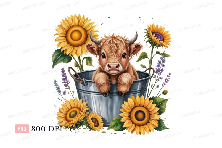 Similar Design Products to Highland calf in bucket with sunflowers image
