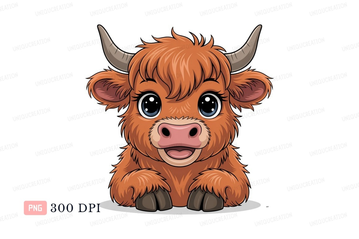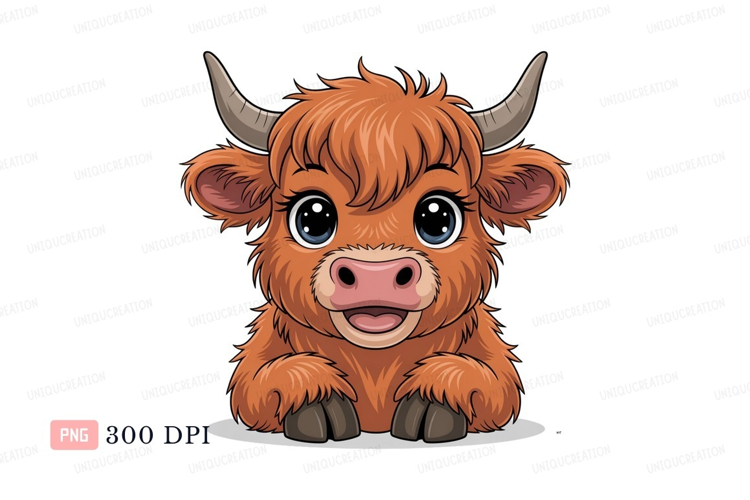 Fluffy Highland Cow C L I P A R T brown orange example image 1