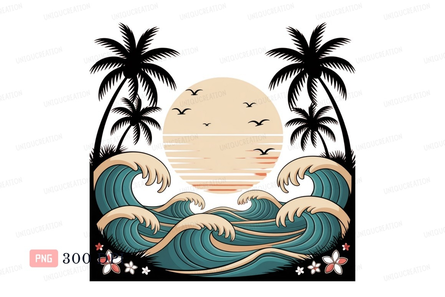 Similar Design Products to Ocean waves sunset palm trees birds image