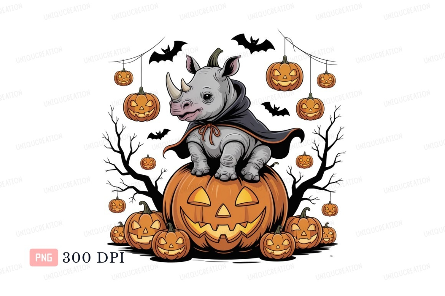 Animal Holiday Halloween Black Cute Orange Spooky Pumpkin Costume Rhino