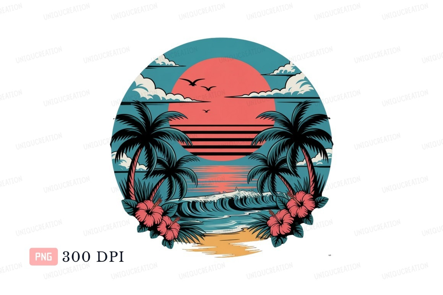 Similar Design Products to Tropical sunset beach scene with palm trees and ocean waves