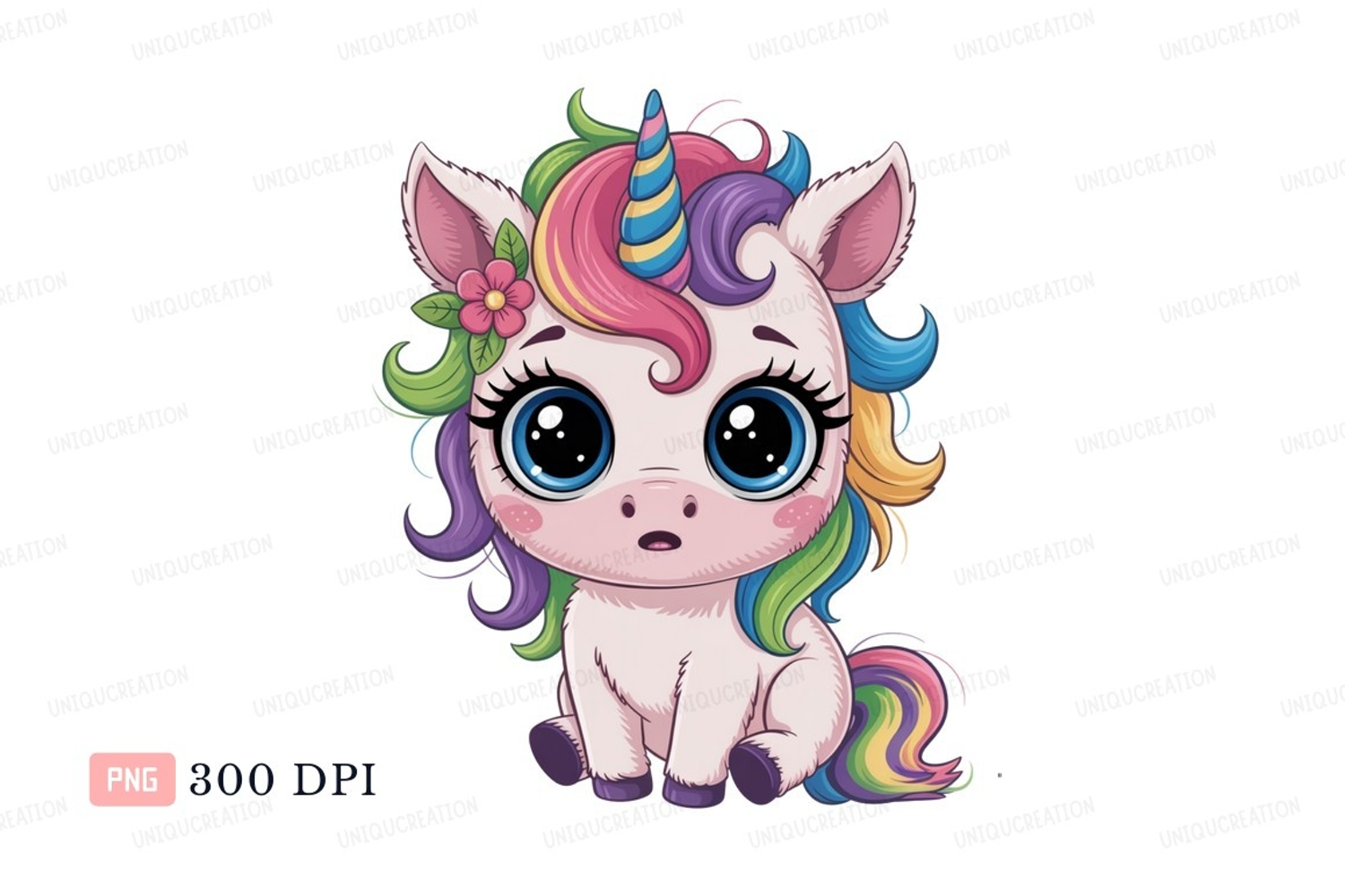Cartoon Fantasy Cute Flower Horn Unicorn Rainbow Eyes Mane Mythical