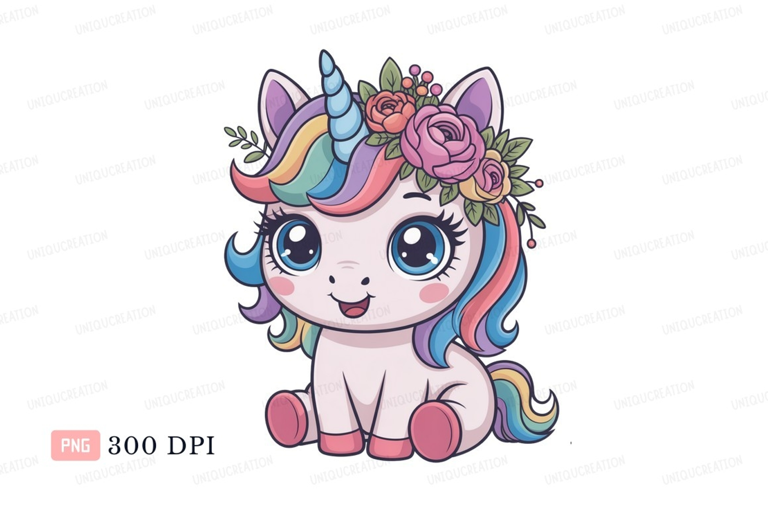 Cute unicorn with rainbow mane and flower crown image example image 1