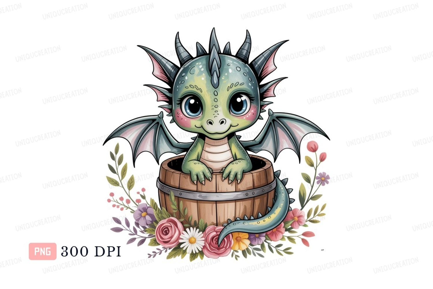 Fantasy Whimsical Cute Pink Baby Green Flowers Blue Dragon Barrel
