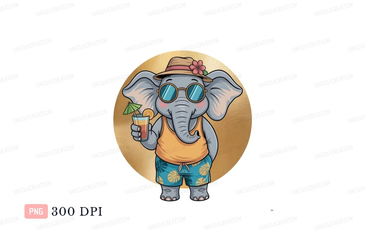 Summer Beach Drink Tropical Hat Vacation Elephant Cocktail Sunglasses Shorts
