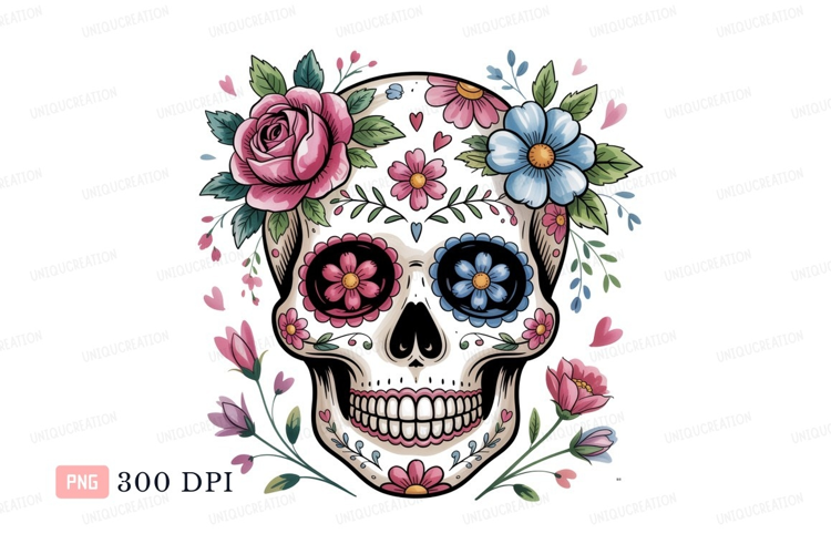 Decorative Pink Green Skull Hearts Ornamental Flowers Blue Dead Day