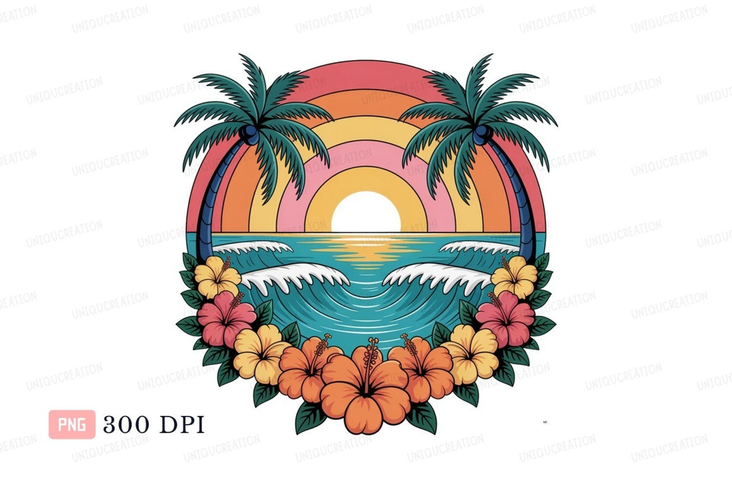Similar Design Products to Tropical sunset ocean waves palm trees hibiscus image