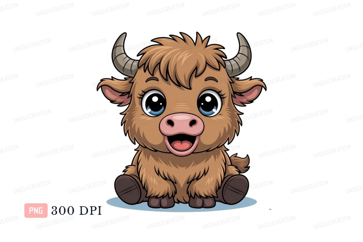 Fluffy brown bull with blue eyes calf cartoon example image 1