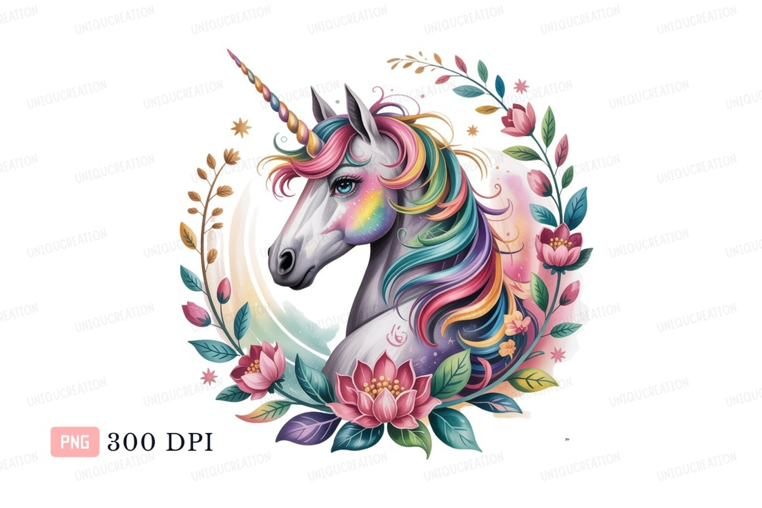 Majestic unicorn surrounded by colorful flowers horse example image 1