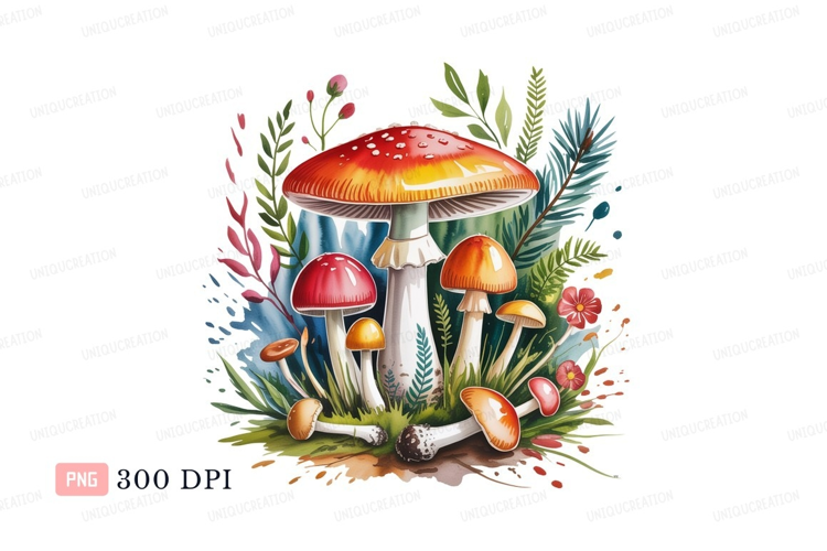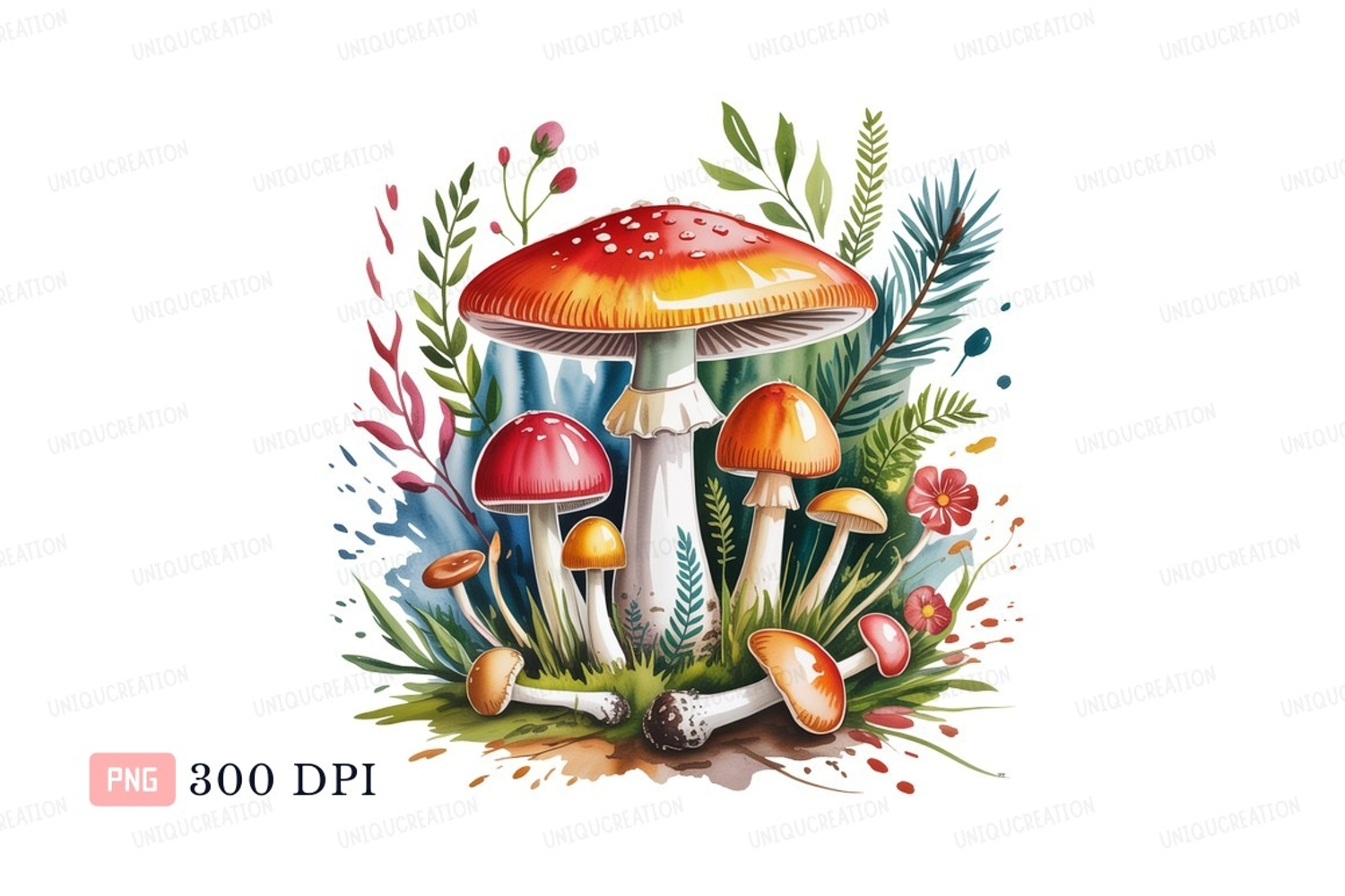 Illustration Nature Green Forest Orange Red Foliage Plants Mushrooms Fungi