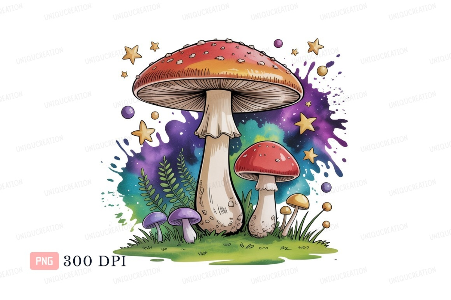Similar Design Products to Red mushrooms starry nebula purple yellow