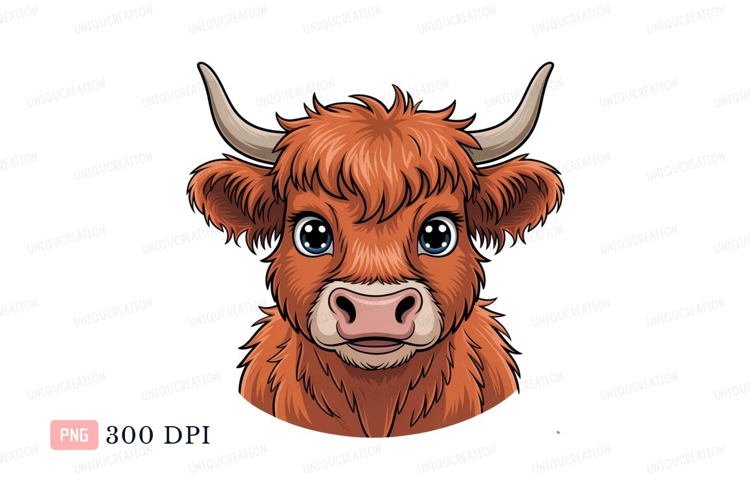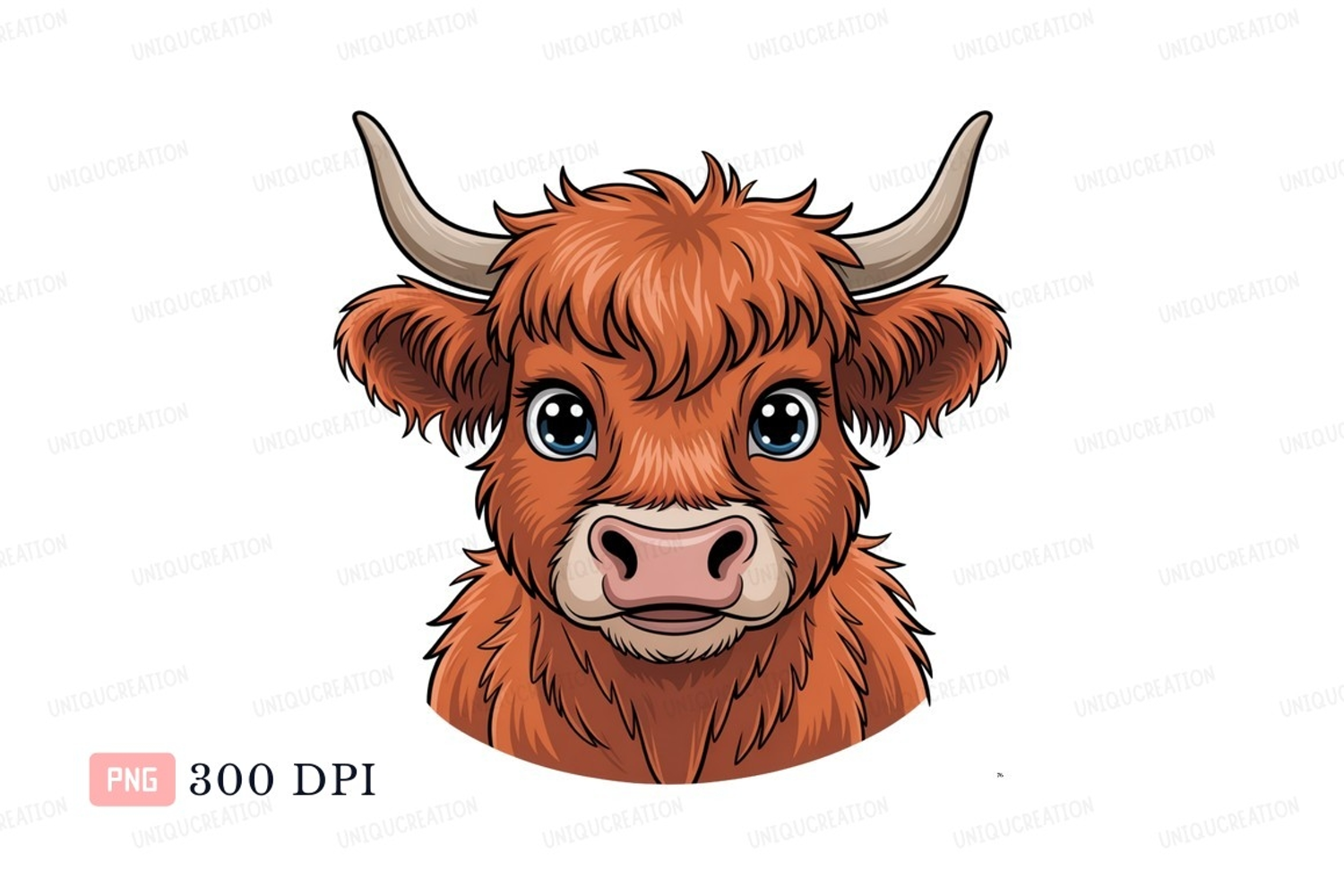 Similar Design Products to Fluffy brown cow with big blue eyes highland