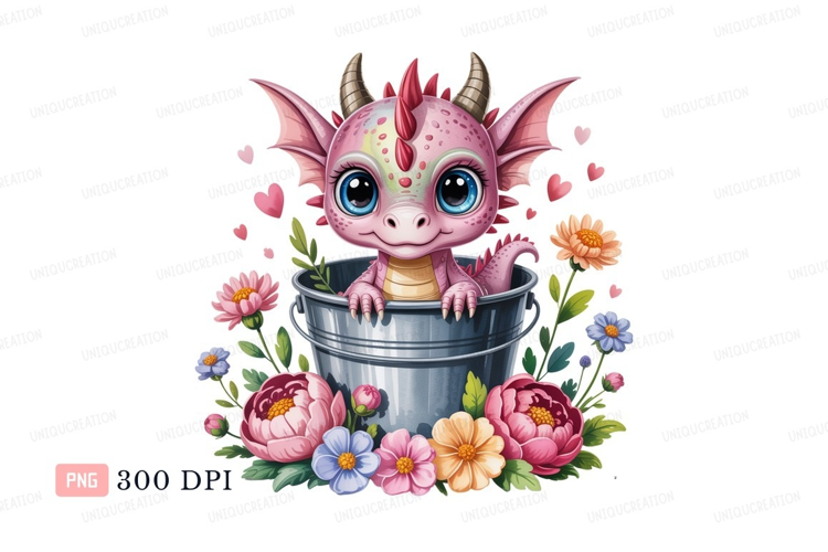 Similar Design Products to Pink dragon in bucket with flowers cute