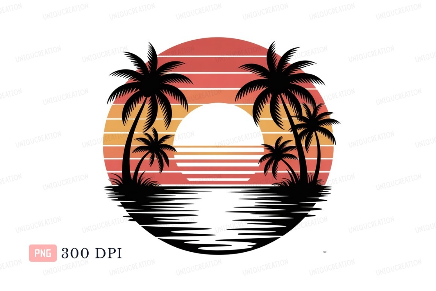 Retro Ocean Silhouette Beach Sunset Orange Yellow Tropical Palms Vibe