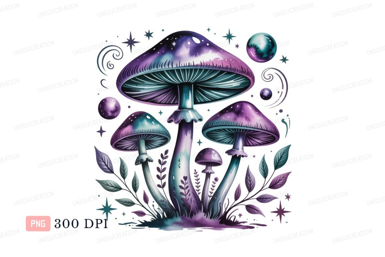 Fantasy Celestial Purple Cosmic Teal Mushrooms Stars Flora Magical Galaxy