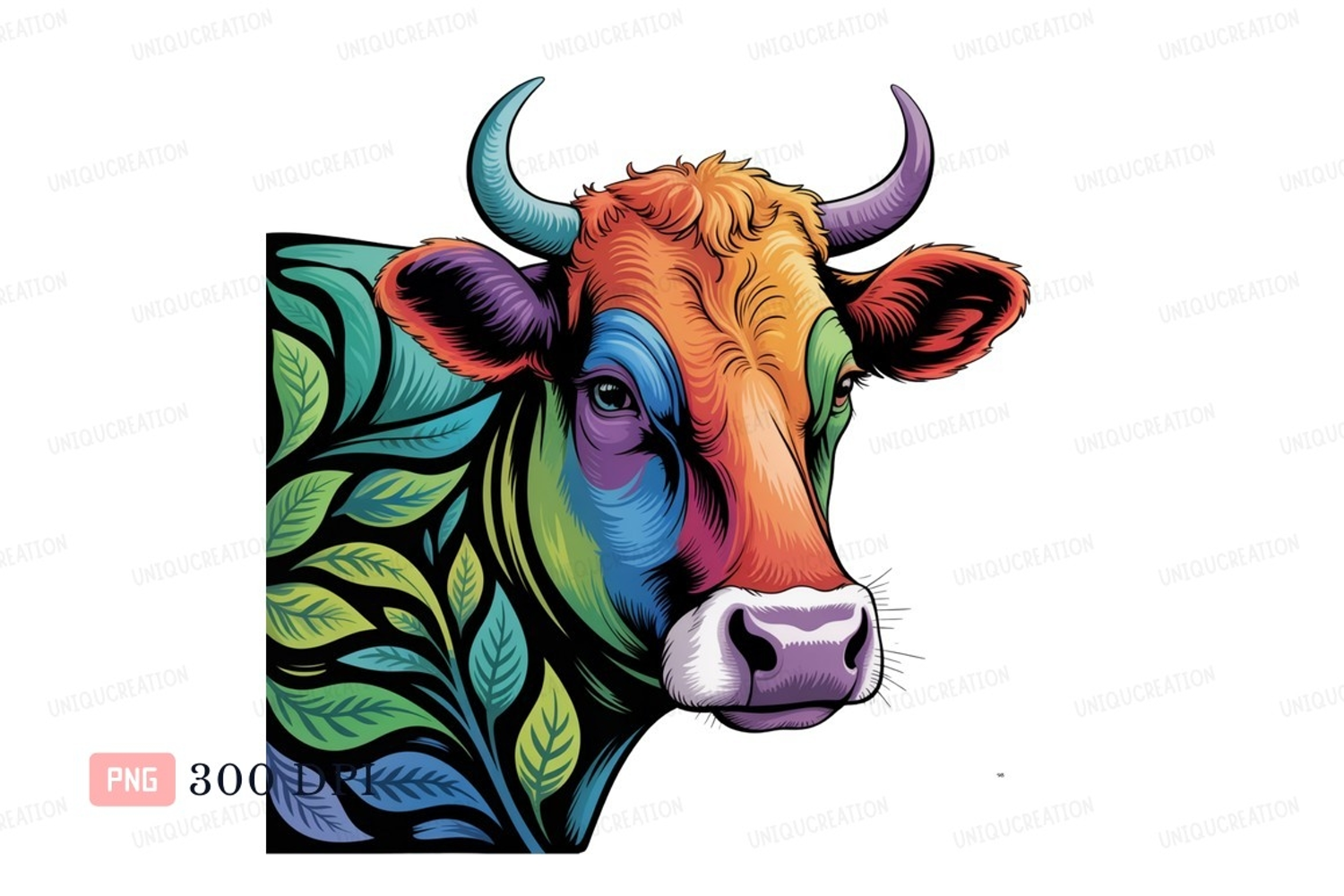 Colorful cow with leaves Clipart P N G nature animal example image 1