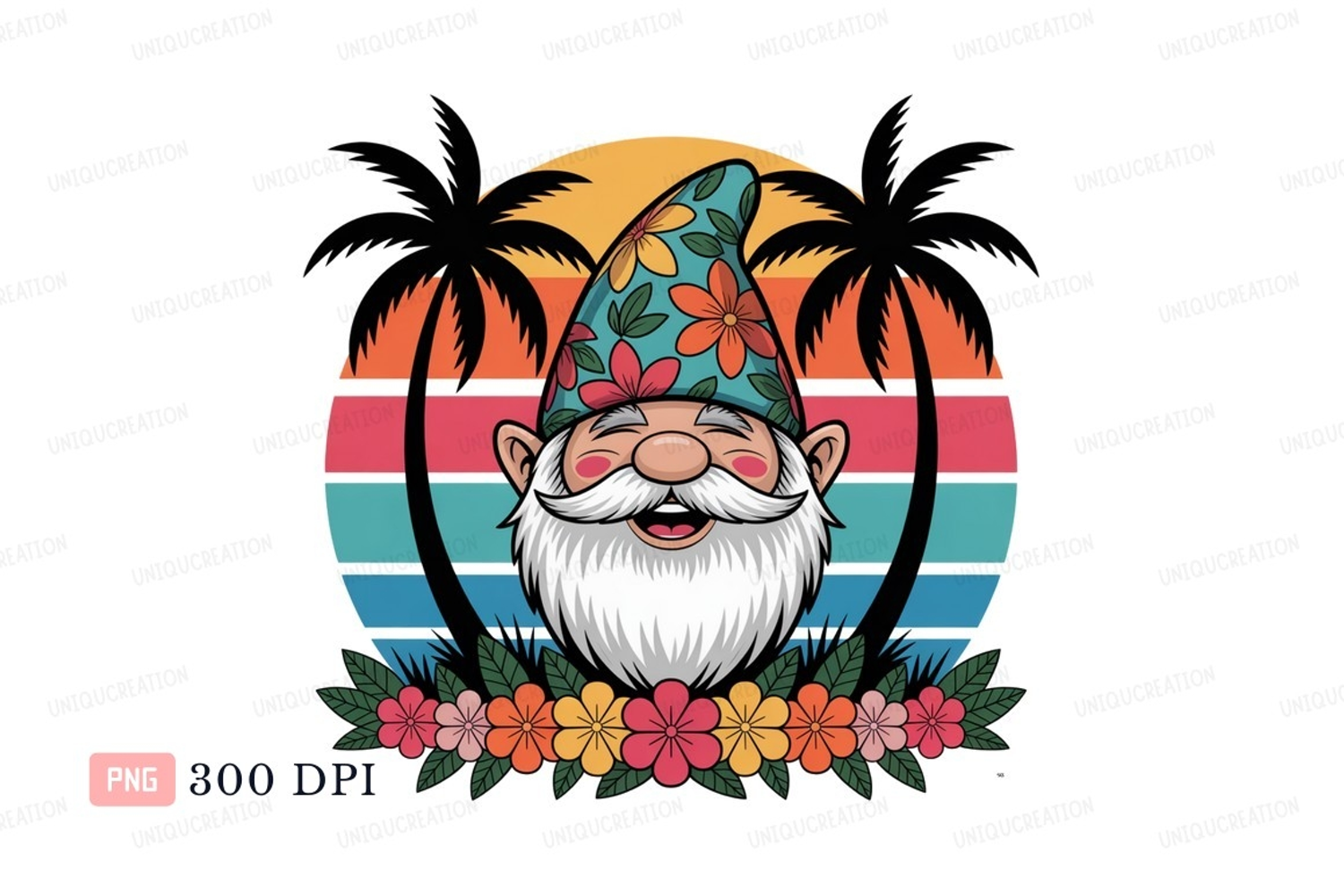 Floral Flowers Sunset Beard Tropical Trees Hat Cheerful Palm Gnome