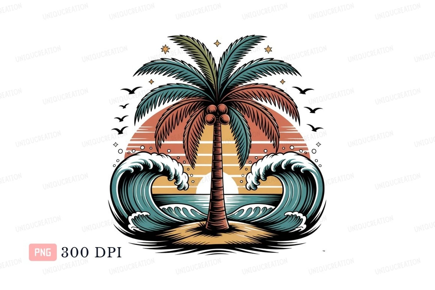 Similar Design Products to Tropical island sunset ocean waves palm tree image