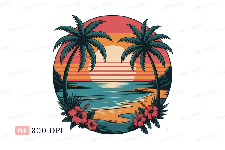 Similar Design Products to Tropical sunset beach palm trees hibiscus image