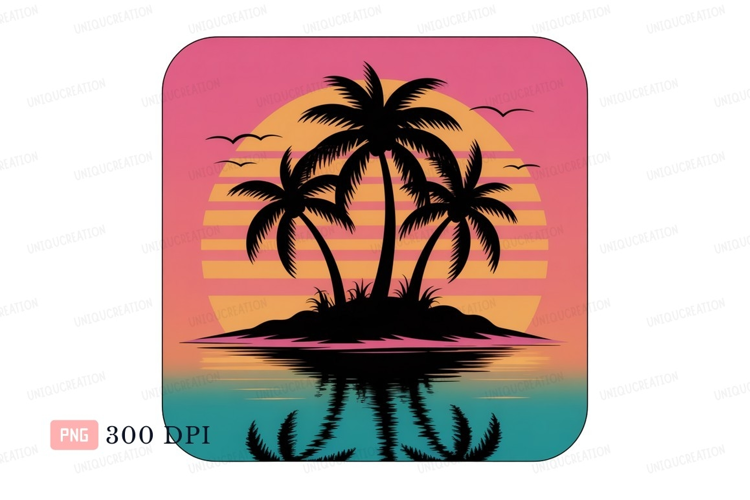 Similar Design Products to Tropical sunset island palm trees reflection image